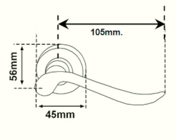 MEDIDAS: 120mm. largo x 56mm. alto x 45mm. diámetro x 105mm. largo manilla desde el eje de la roseta.